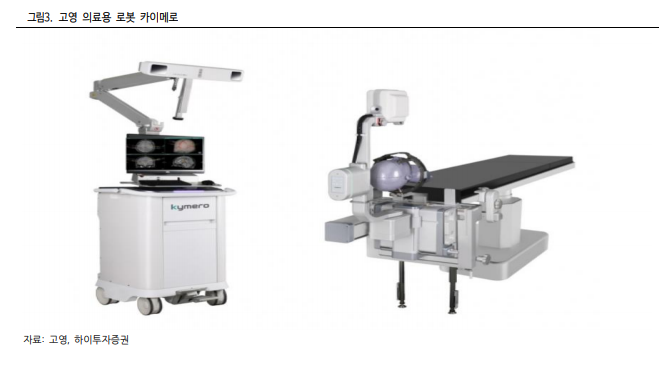 2) 동사의 뇌수술용 로봇 ‘카이메로’는 자체 개발한 차세대 먹거리 제품으로 꼽히고 있으며, 세브란스병원이 지난해 장비 도입을 시작함.