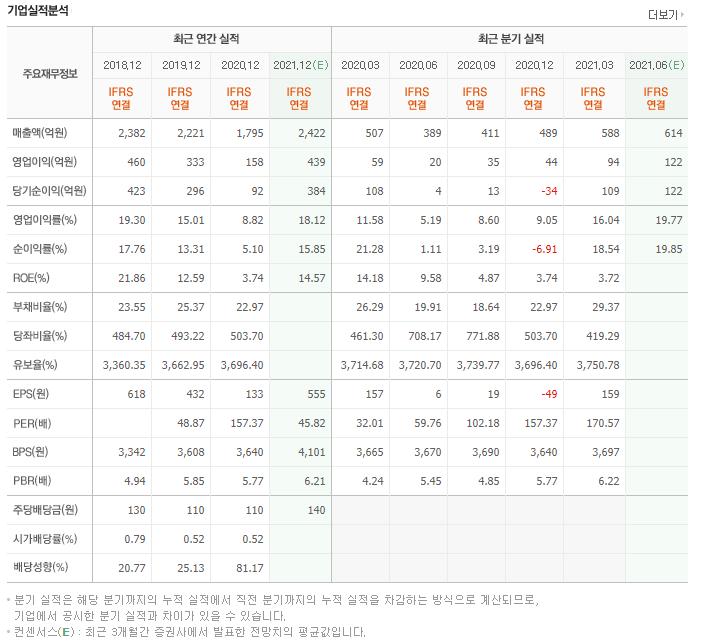 2) 전방산업 투자 회복으로 인하여 동사의 올해 실적의 경우 매출액 2,487 억원(YoY +38.6%), 영업이익 446 억원(YoY +182.3%)으로 예상되면서 턴어라운드가 가속화될 것임.