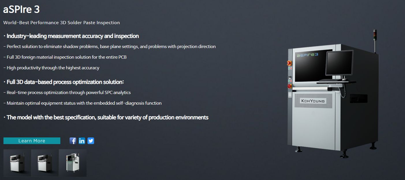 3) 동사는 2013년 납땜 위에 소자 및 부품이 연결되었는지 검사하는 3D 부품실장 검사장비(AOI)도 출시함.